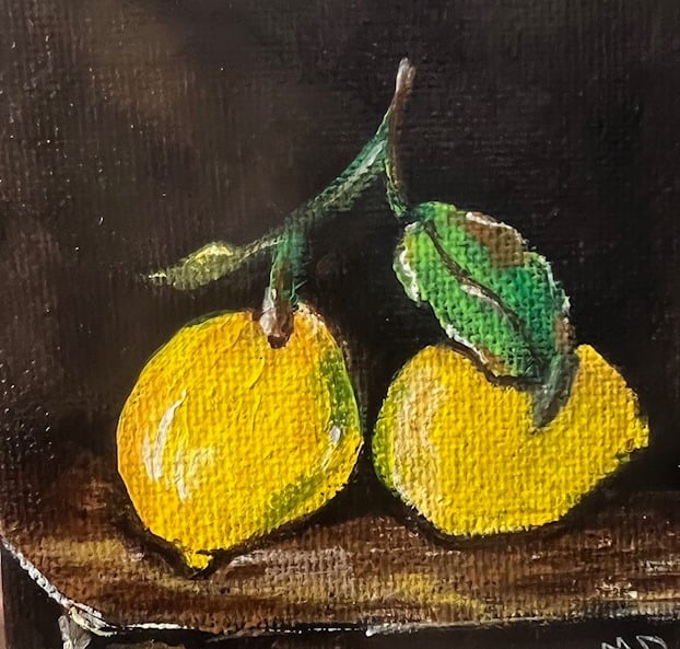 Delicate arrangements showcasing everyday objects in new light. This is a piece I created in acrylic on a 3 x 3 magnet.